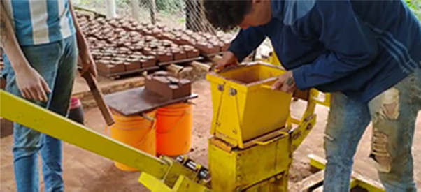 In partnership with Polk Building Ministries (PBM), our foundation has been able to provide an efficient and inexpensive means of manufacturing interlocking building blocks using local resources.